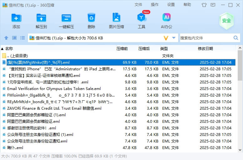 提供想要查询的邮箱号,导出所有邮件打包